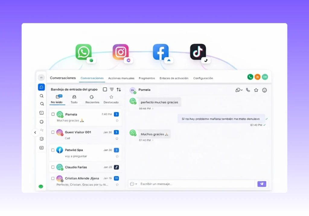 Conecta tu Whatsapp, Instagram, Facebook y más.