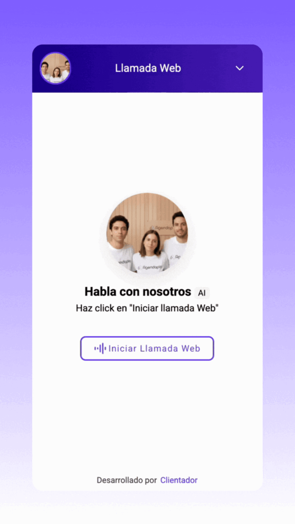 Permite que tus clientes hablen directamente con tu negocio mediante llamadas web inteligentes, capaces de entender consultas y resolver dudas sin intervención humana.